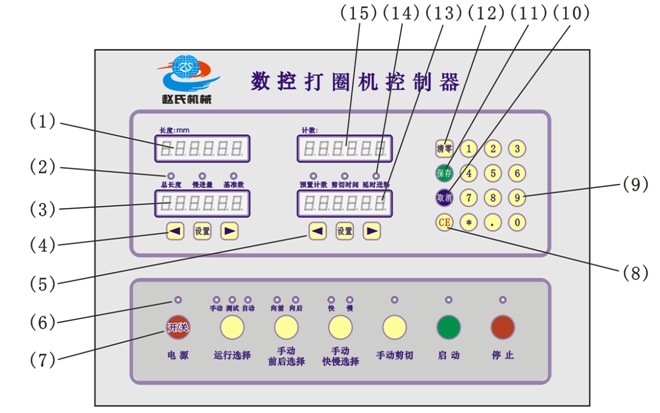 (1).實時進料長度數(shù)碼顯示窗,顯示單位:mm,